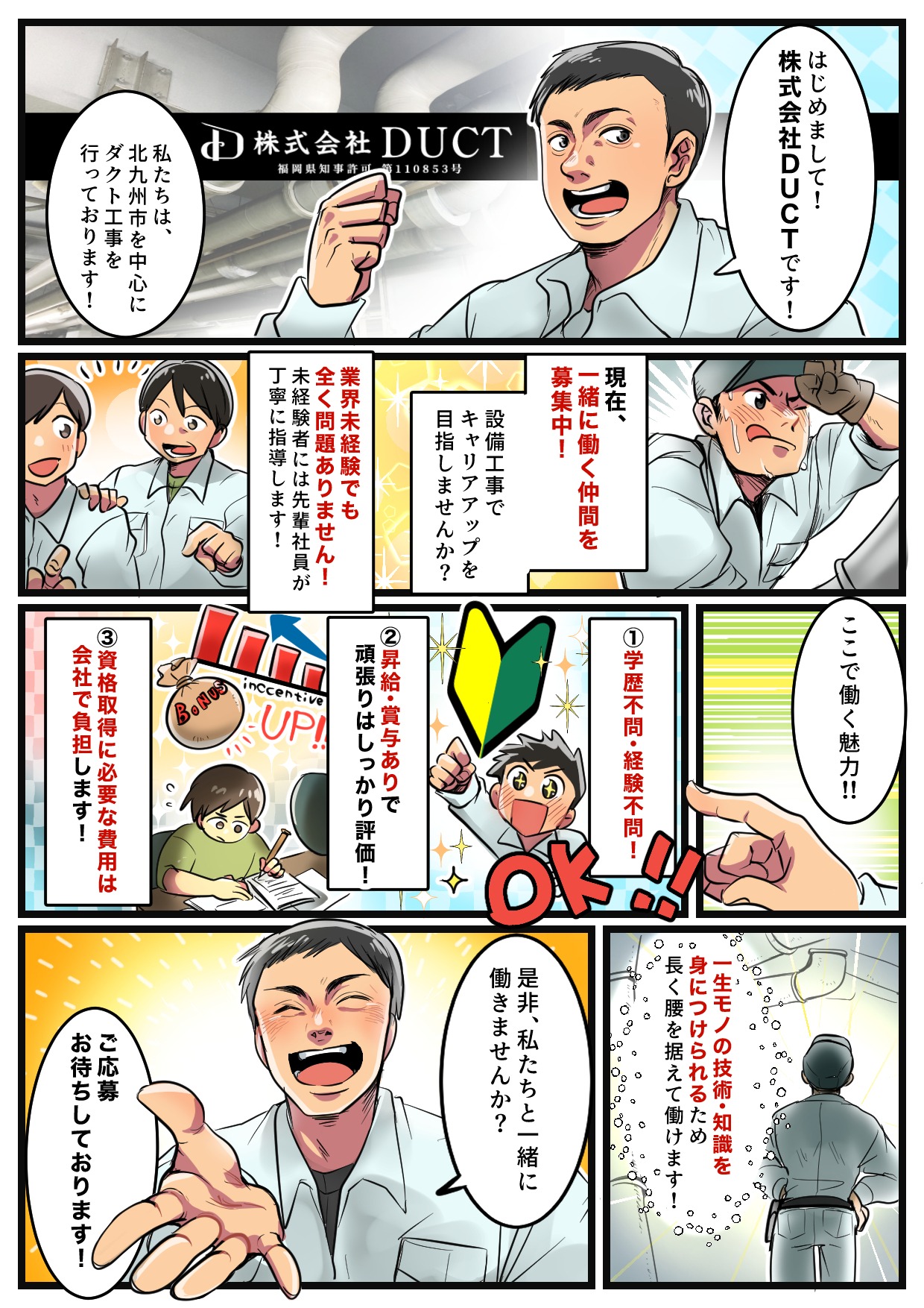 福岡県北九州市の株式会社DUCTでは換気ダクト(排気・給気ダクト)・厨房ダクト・空調ダクト・排熱ダクトなど多種多様なダクトに関する施工に携わっております。